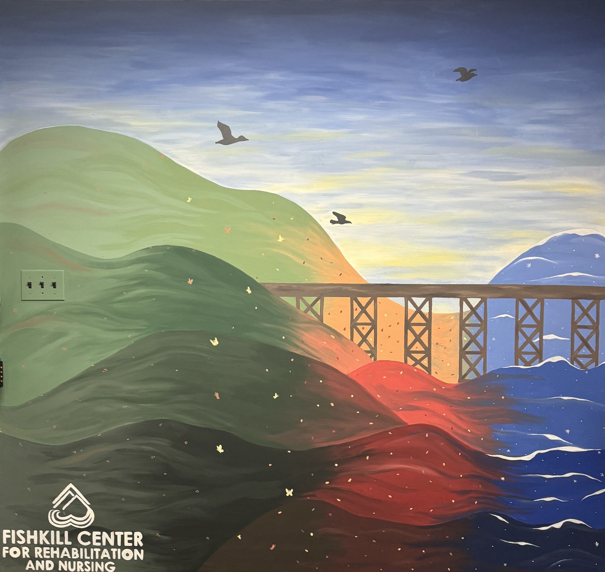 At the beginning of the Fall 2024 semester, I was selected to paint a mural for the Fishkill Center for Rehabilitation and Nursing in Beacon, NY, a facility located less than an hour’s drive from my college.