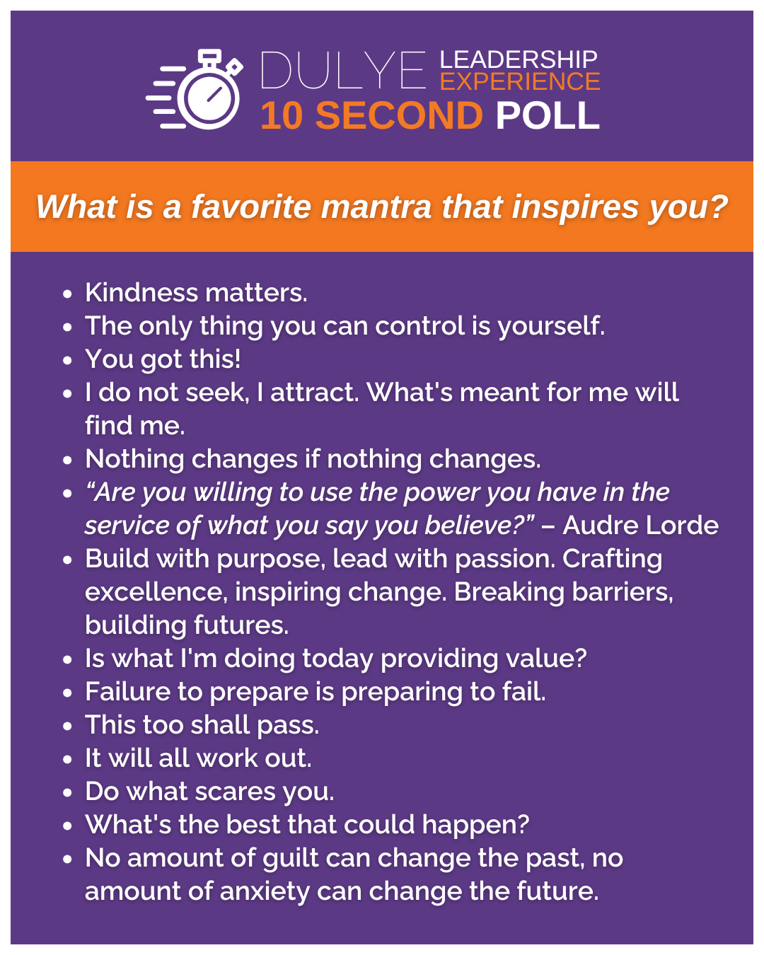 The last DLE Poll explored words that provide inspiration–whether it’s a quote, tagline, motto, or expression. We asked: What is a favorite mantra that inspires you?